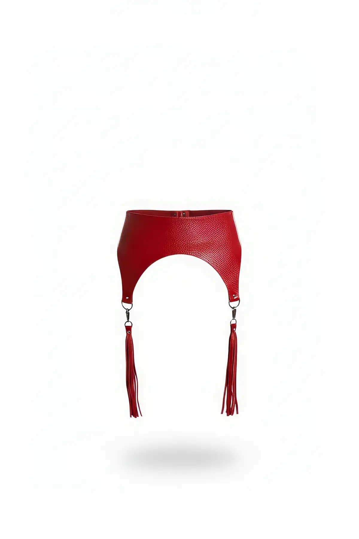 Kırmızı Kadın Kemer Kalın Deri Püskül Detaylı Korse - APFT755