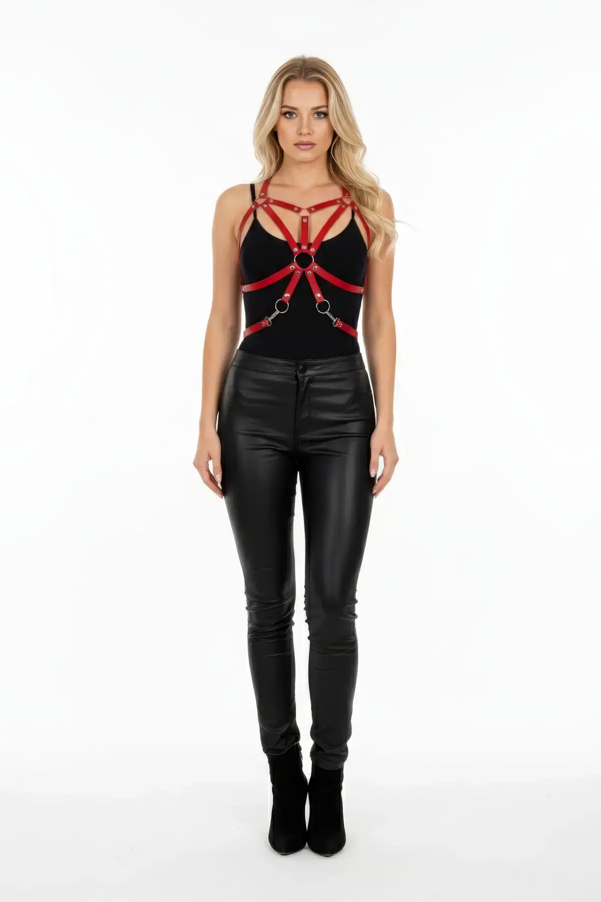 Kırmızı Kadın Kemer Deri Vücut Aksesuarı Halka Detaylı - APFT107