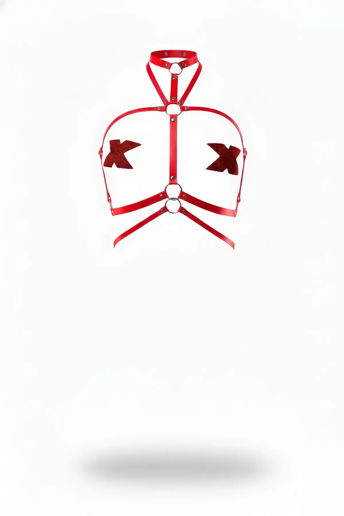Kırmızı Harness Takım Deri Jartiyer Detaylı Metal Halkalı - APFT228