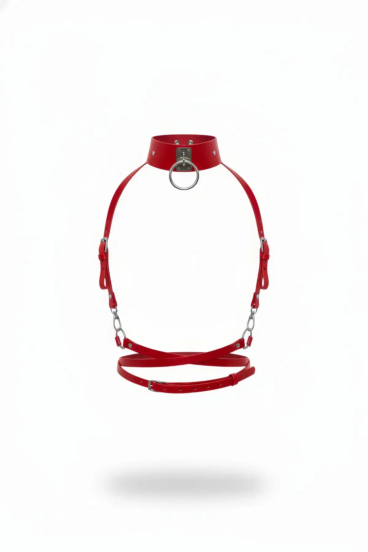 Kırmızı Kadın Kemer Metal Halka Detaylı Zincirli Vücut Aksesuarı - APFT644