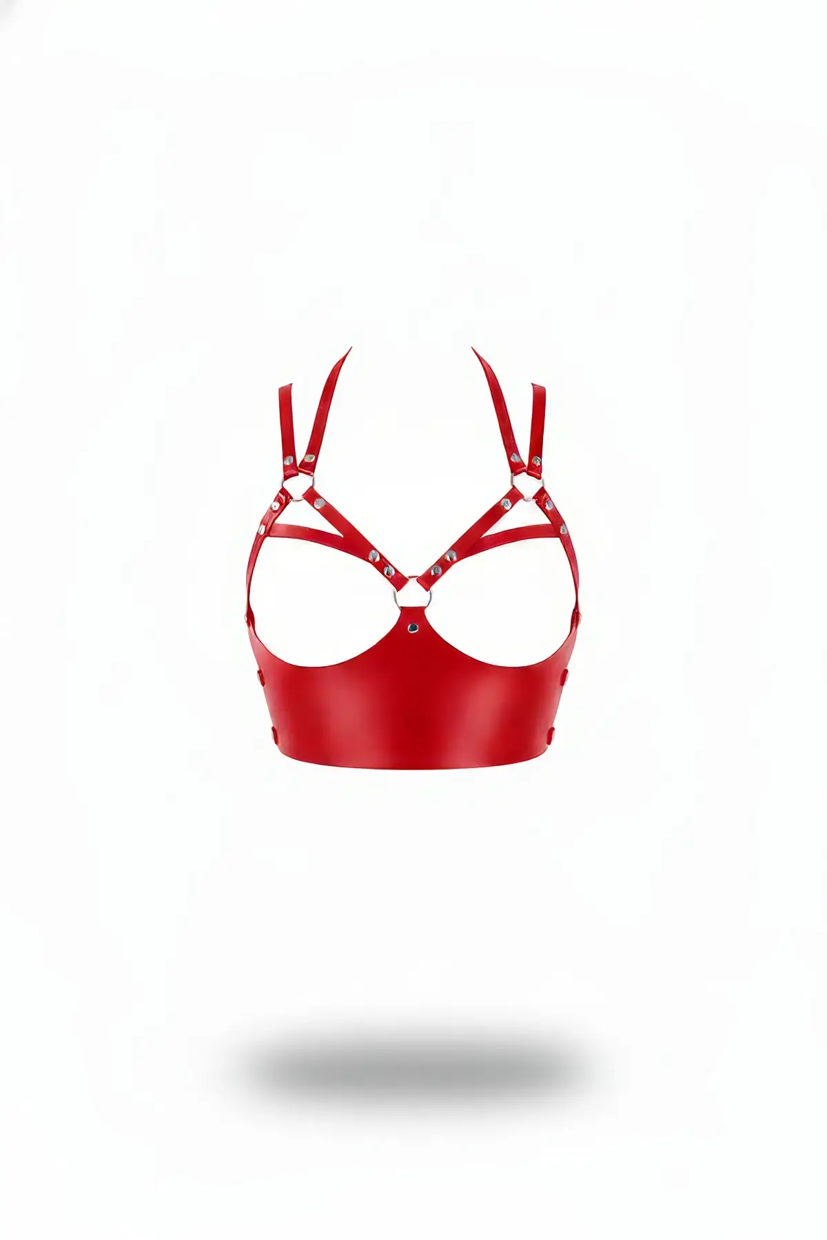 Kırmızı Harness Takım Suni Deri Zincir Detaylı Vücut Aksesuarı - APFT713