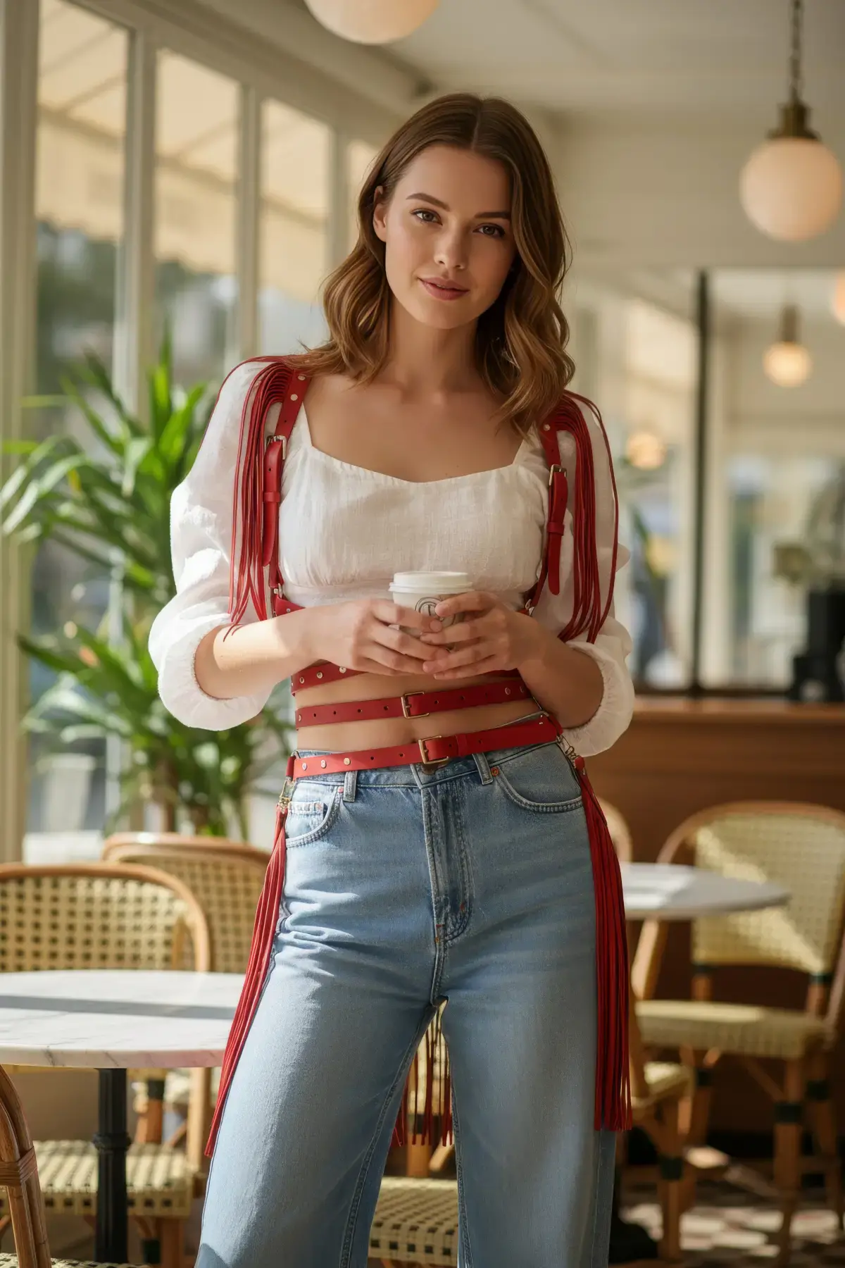 Kırmızı Kadın Kemer Zımbalı Omuz Detaylı Vücut Aksesuarı - APFT1005