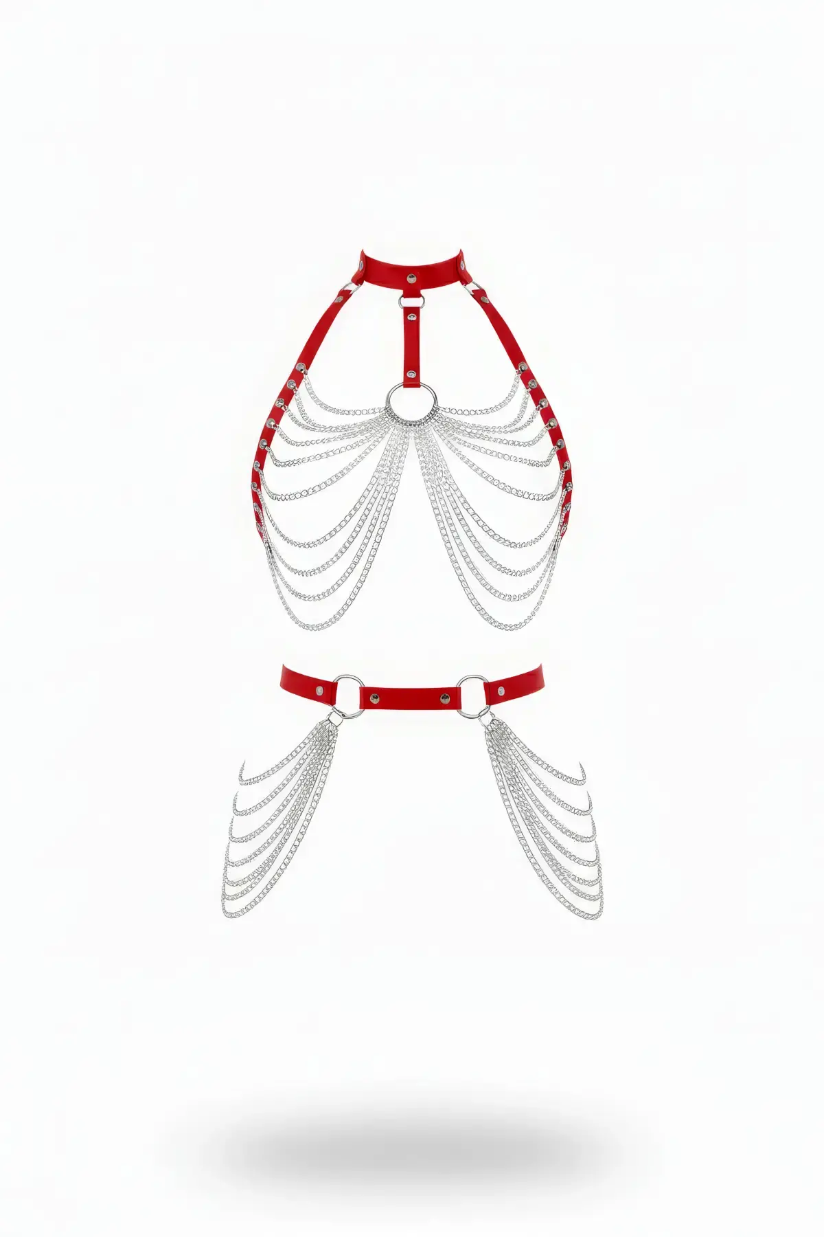 Kırmızı Kadın Kemer Zincir Detaylı Deri Vücut Aksesuarı - APFT701