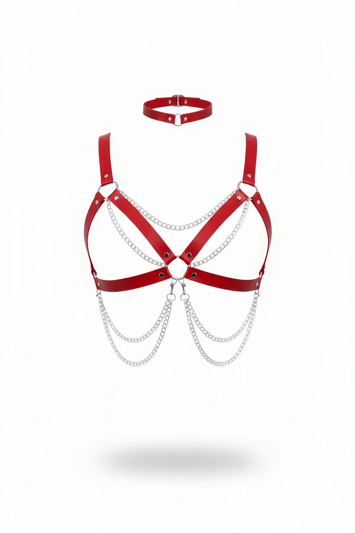 Kırmızı Kadın Kemer Zincir Detaylı Deri Vücut Aksesuarı - APFT813