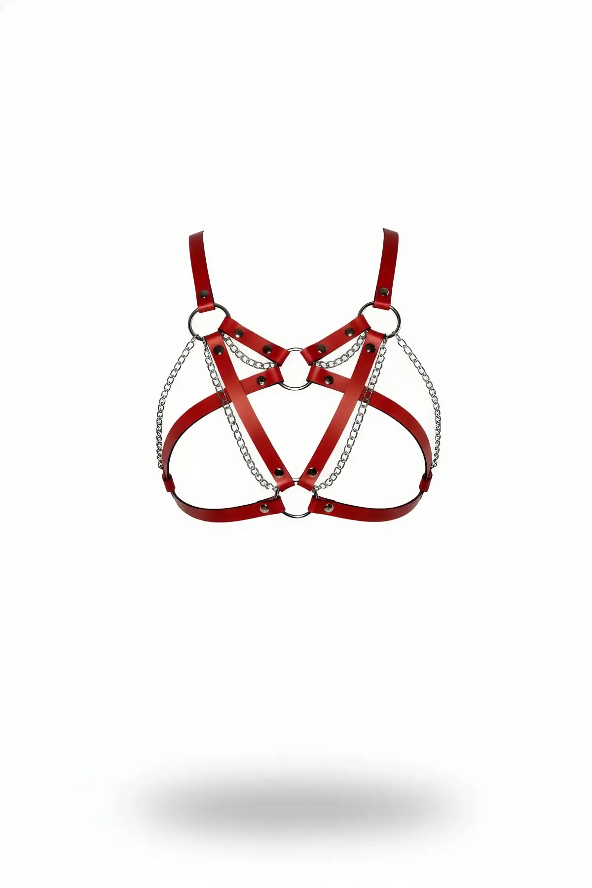 Kırmızı Jartiyer Harness Deri Zımba Detaylı Bacak Aksesuarı - APFT129