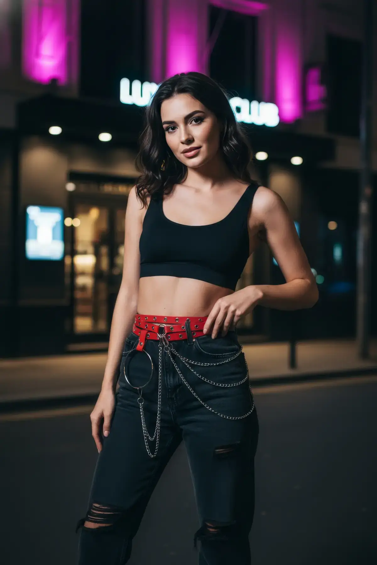 Kırmızı Kadın Kemer Zincir Detaylı Metal Delikli - APFT731