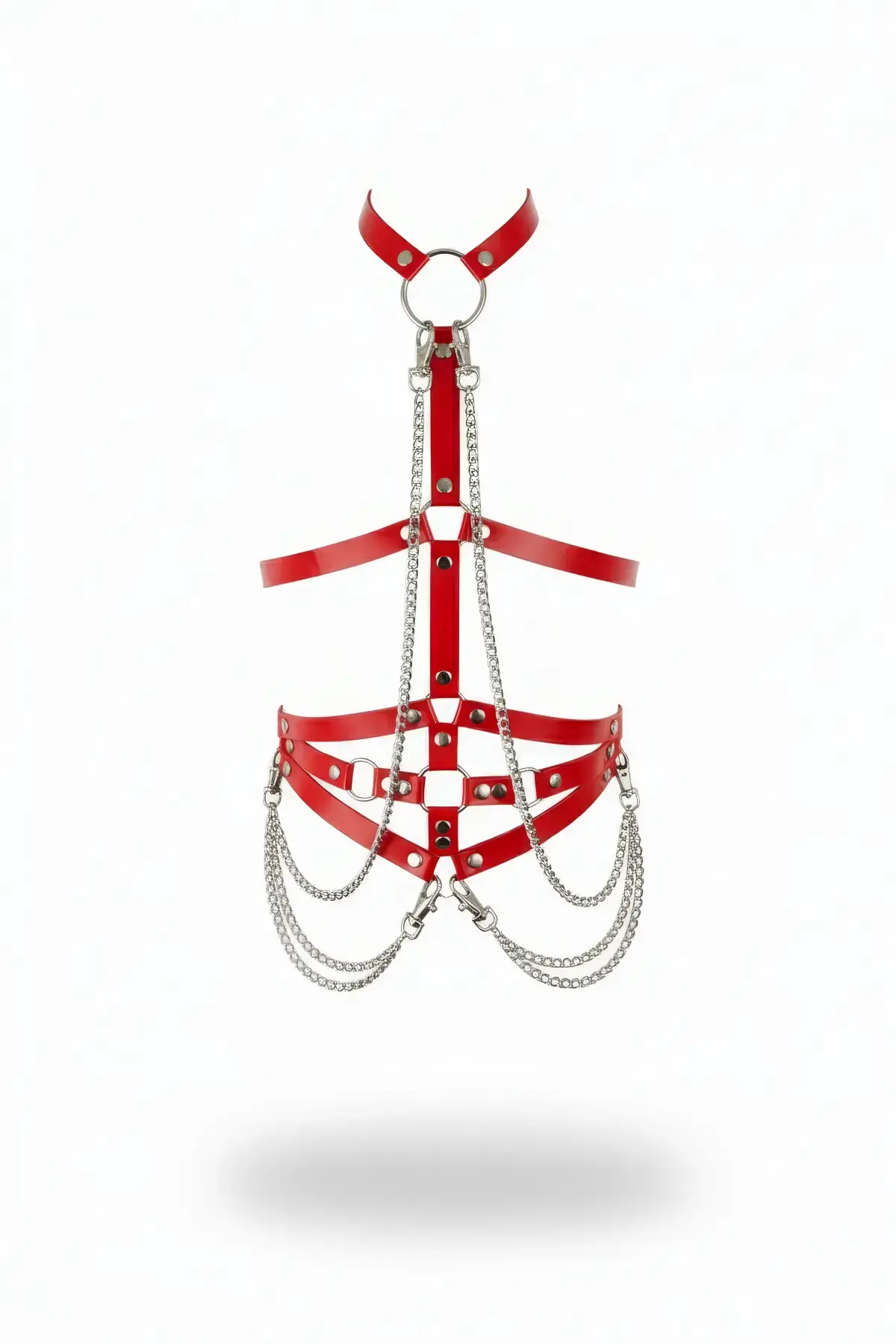 Kırmızı Kadın Kemer Zincir Detaylı Parlak Deri Vücut Kemer - APFT10