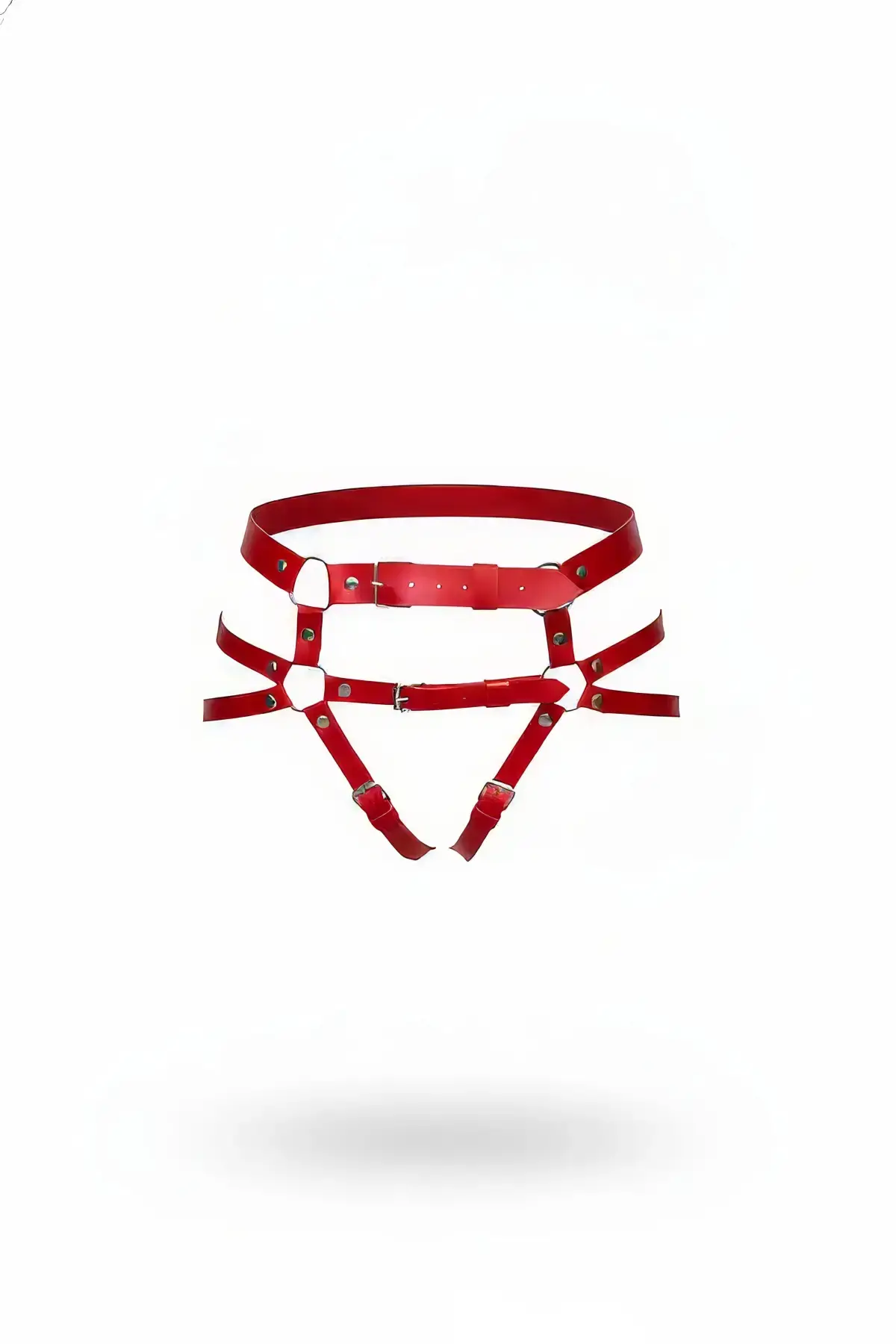 Kırmızı Tanga - Külot Deri Tokalı Vücut Jartiyeri - APFT732