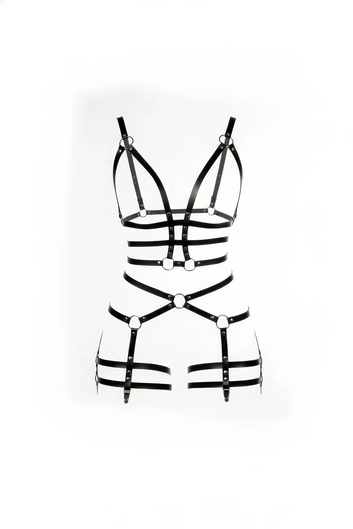 Siyah Body Harness Deri Malzemeli Tam Vücut Kafes Detaylı - APFT811