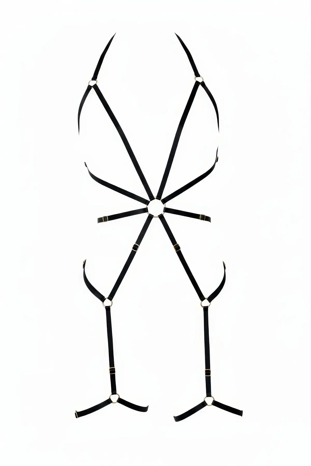 Siyah Body Harness Tam Vücut Metal Halka Detaylı - APFT360