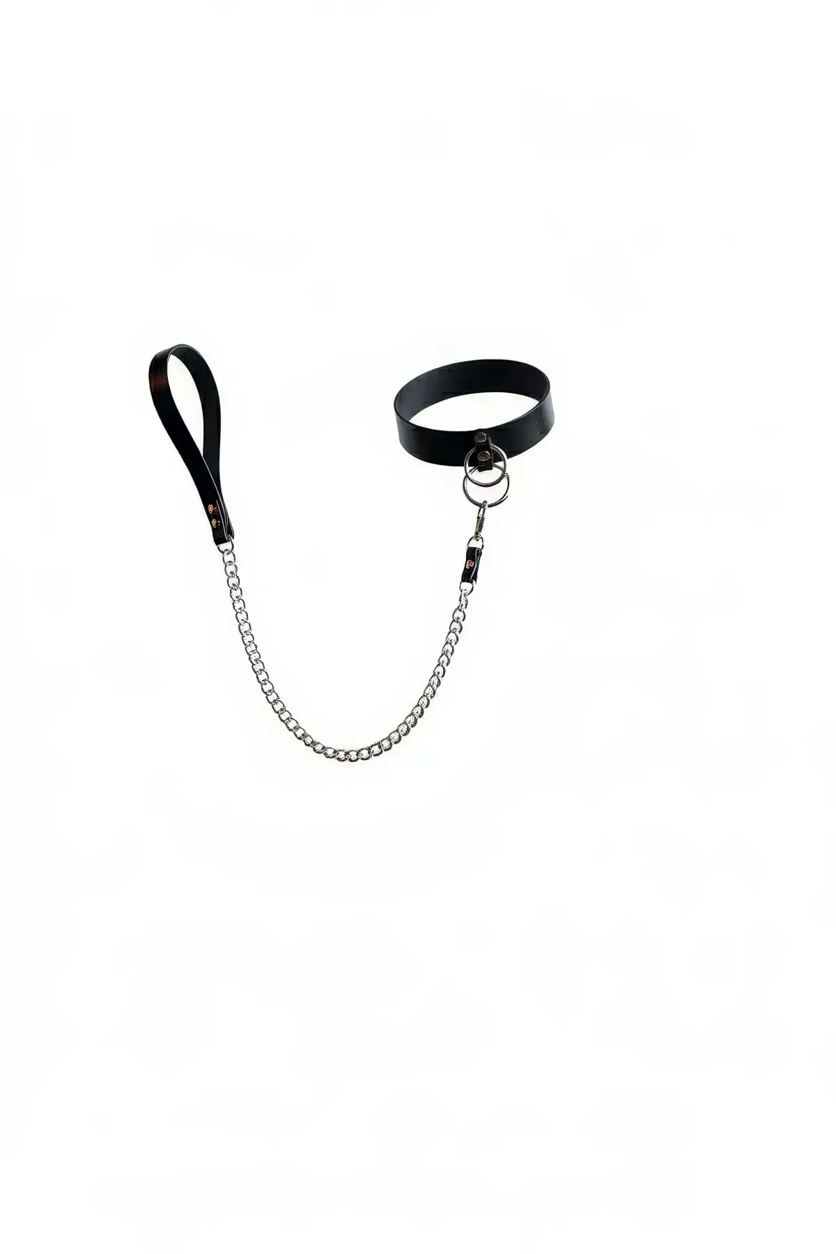 Siyah Choker Geniş Deri Halka Detaylı Zincirli - APFT246