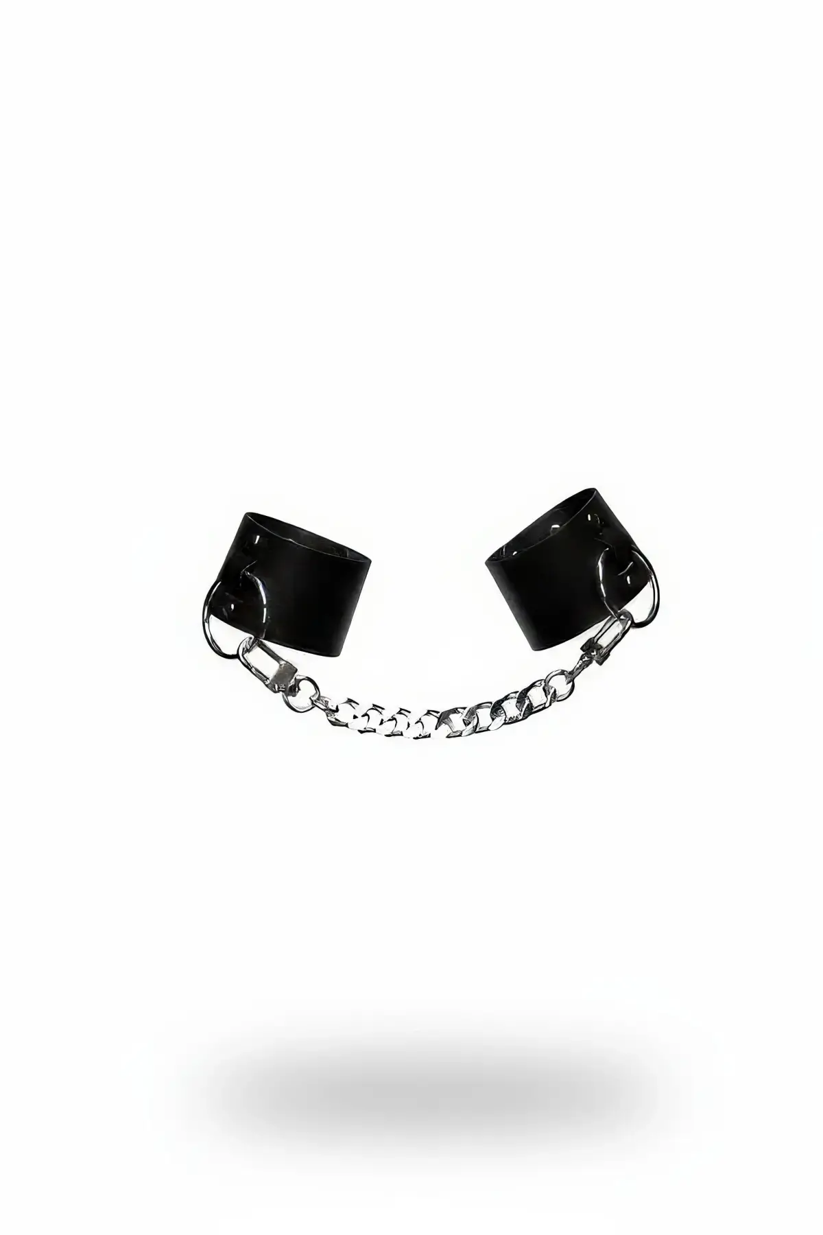 Siyah Deri Kelepçe - Kelepçe Parlak Deri Zincir Detaylı Bilek Kelepçesi - APFT269