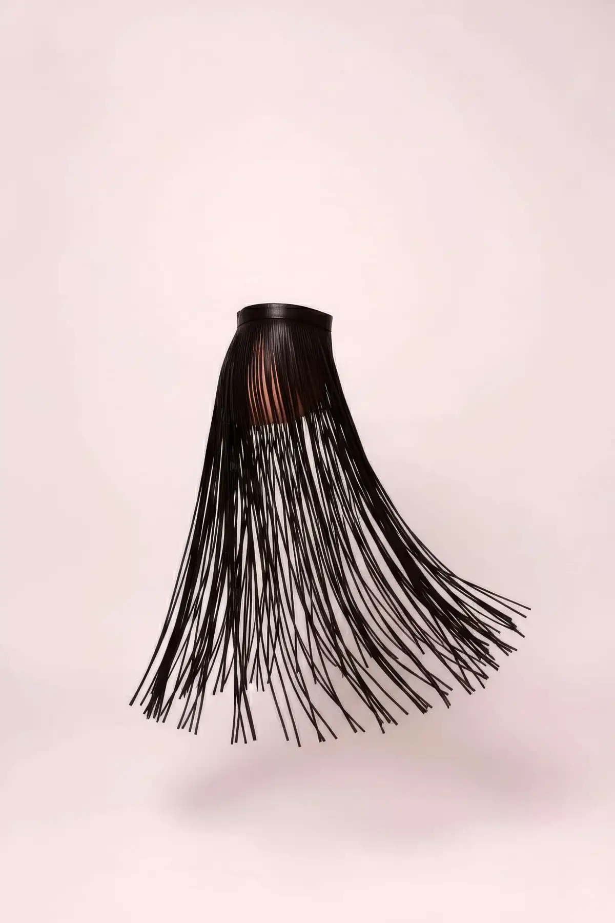 Büyük Beden Siyah Deri Etek Kafes Detaylı Harness Aksesuarı - APFT1252