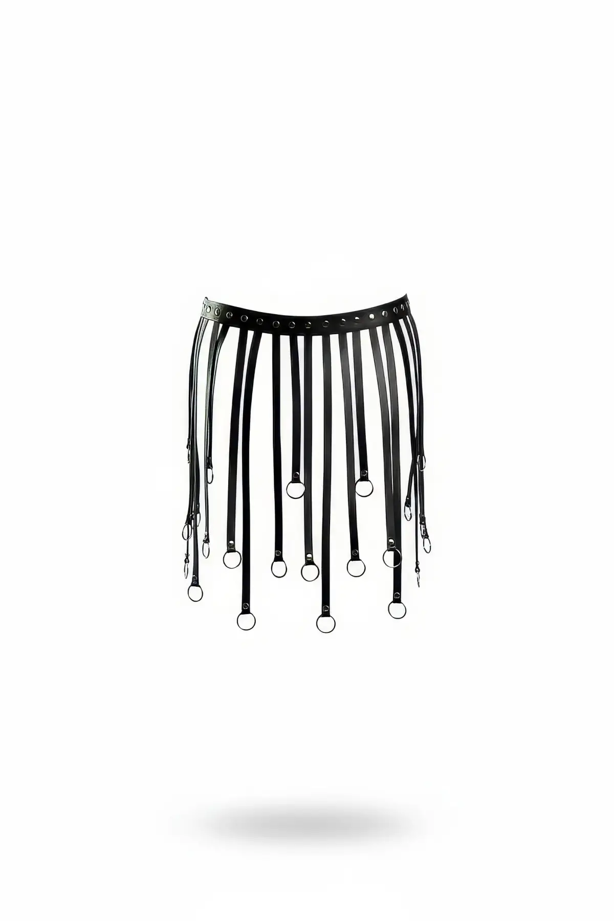 Siyah Harness Takım O Halka Detaylı Deri Vücut Aksesuarı - APFT242