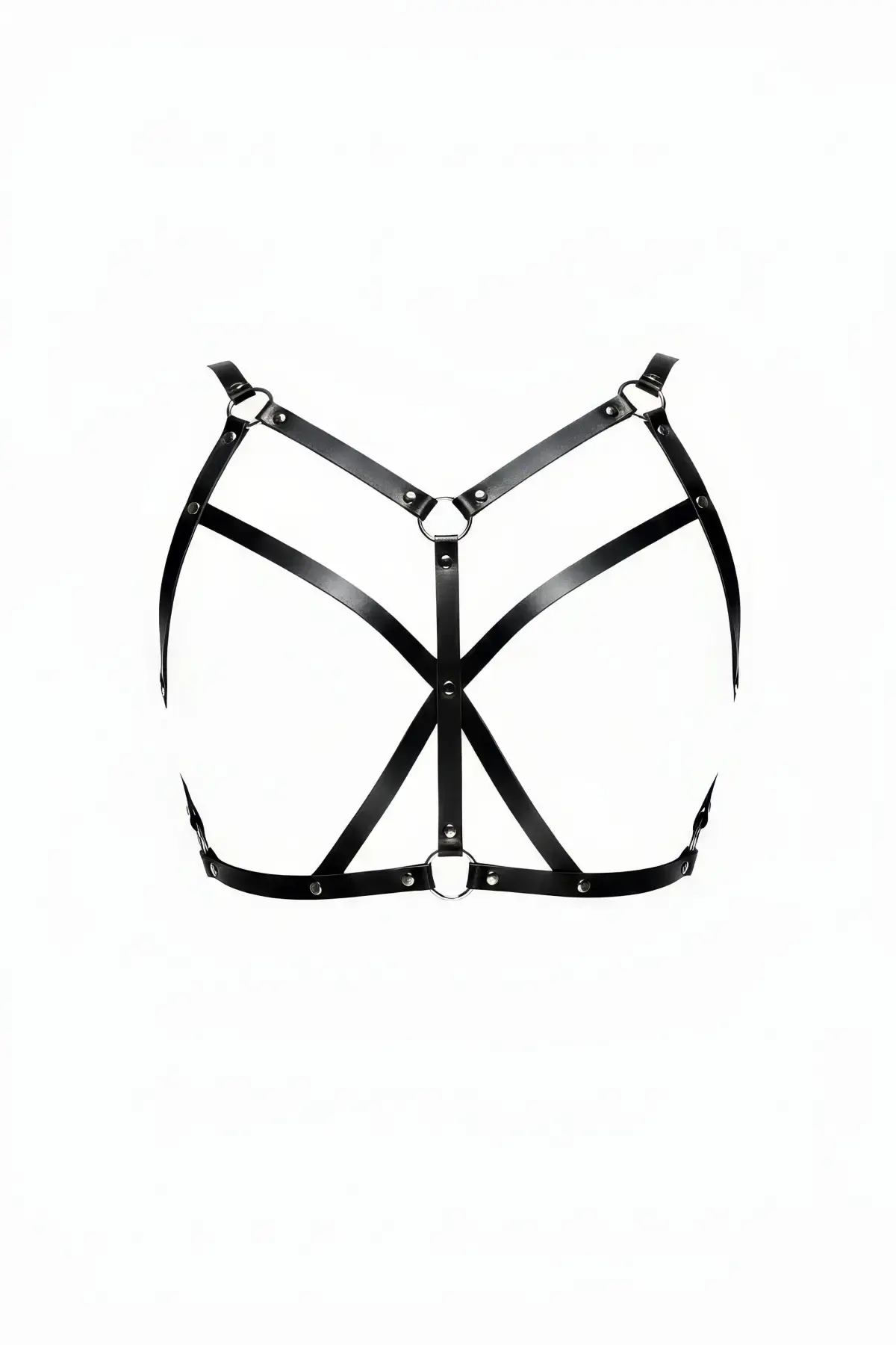 Siyah Göğüs Harness Çapraz Detaylı Suni Deri Vücut Aksesuarı - APFT247
