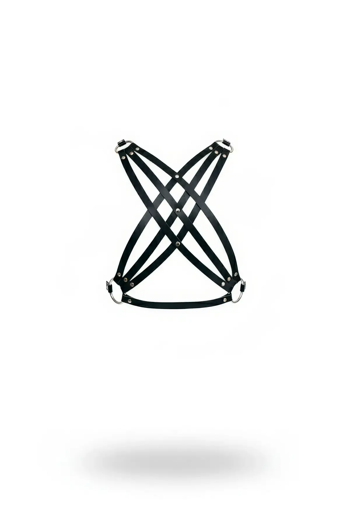 Siyah Göğüs Harness Deri Çapraz Metal Detaylı Vücut Aksesuarı - APFT867