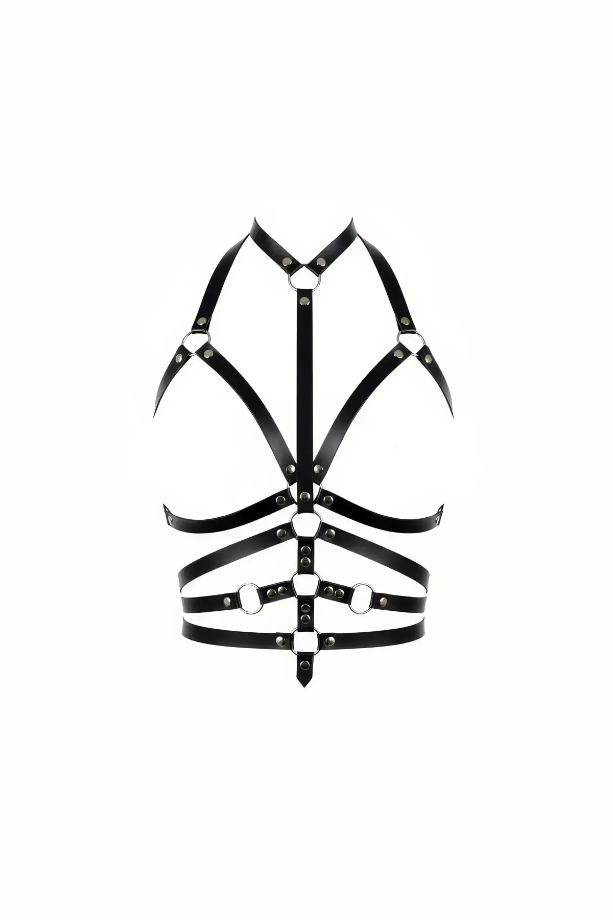 Siyah Göğüs Harness Suni Deri Halka Detaylı Vücut Aksesuarı - APFT24