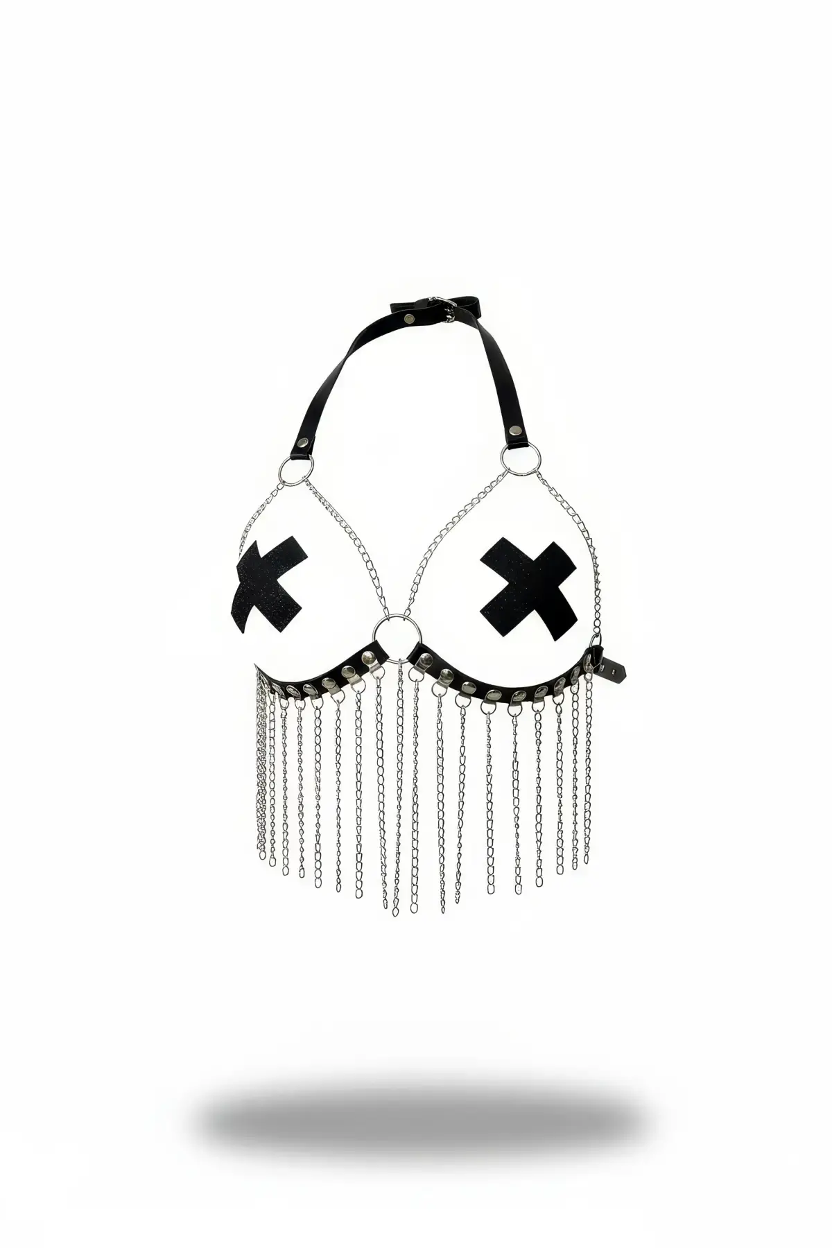 Siyah Göğüs Harness Zincir Detaylı Çapraz Desenli - APFT477