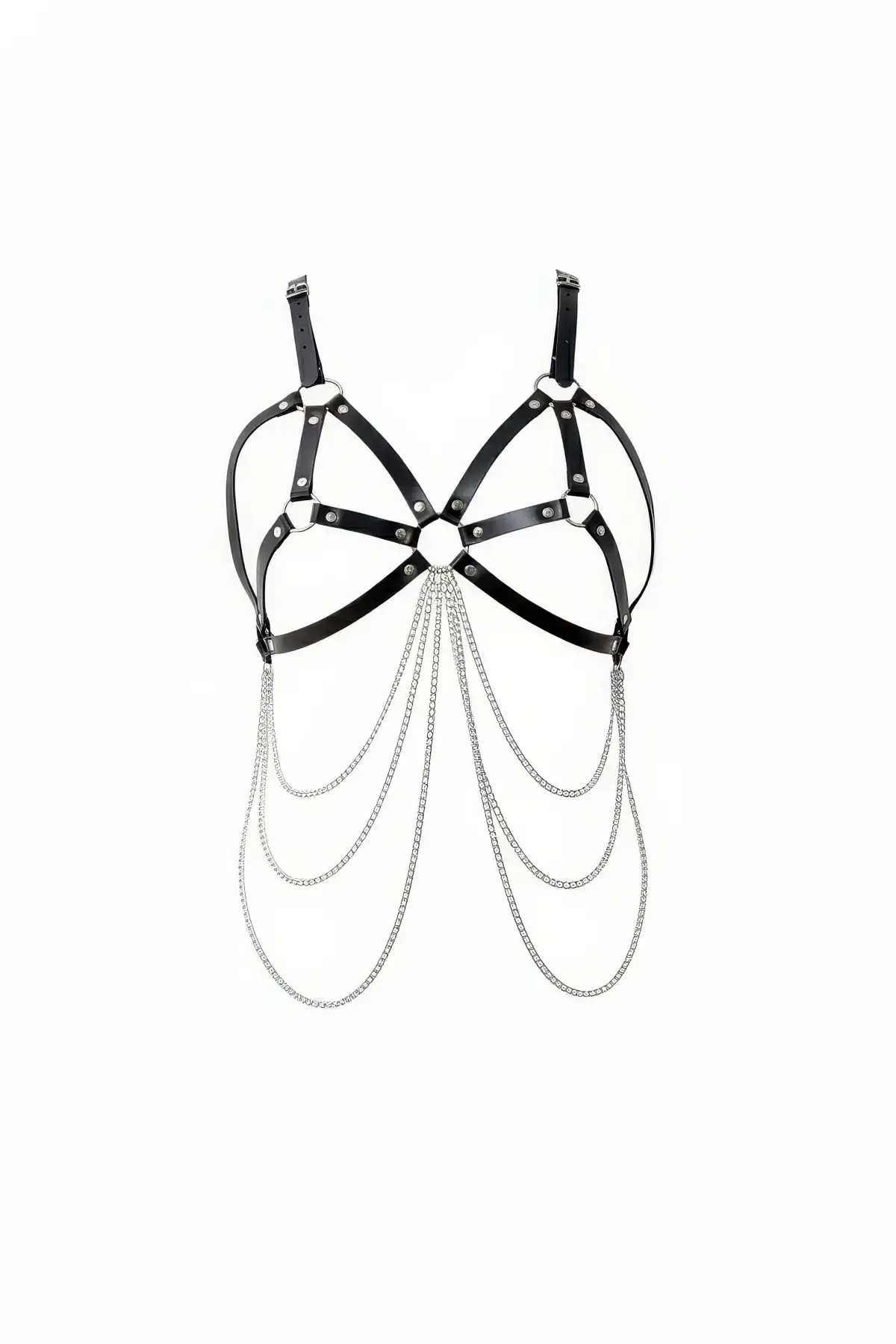 Siyah Göğüs Harness Zincir Detaylı Deri Vücut Aksesuarı - APFT1175