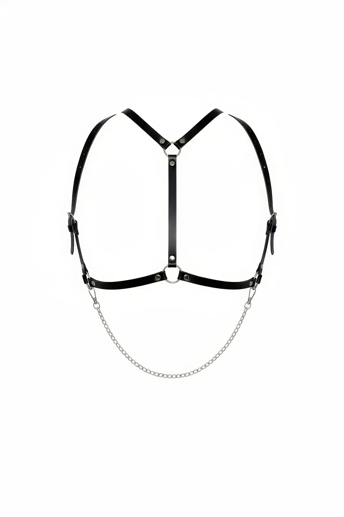 Siyah Göğüs Harness Zincir Detaylı Suni Deri Ayarlanabilir - APFT1185