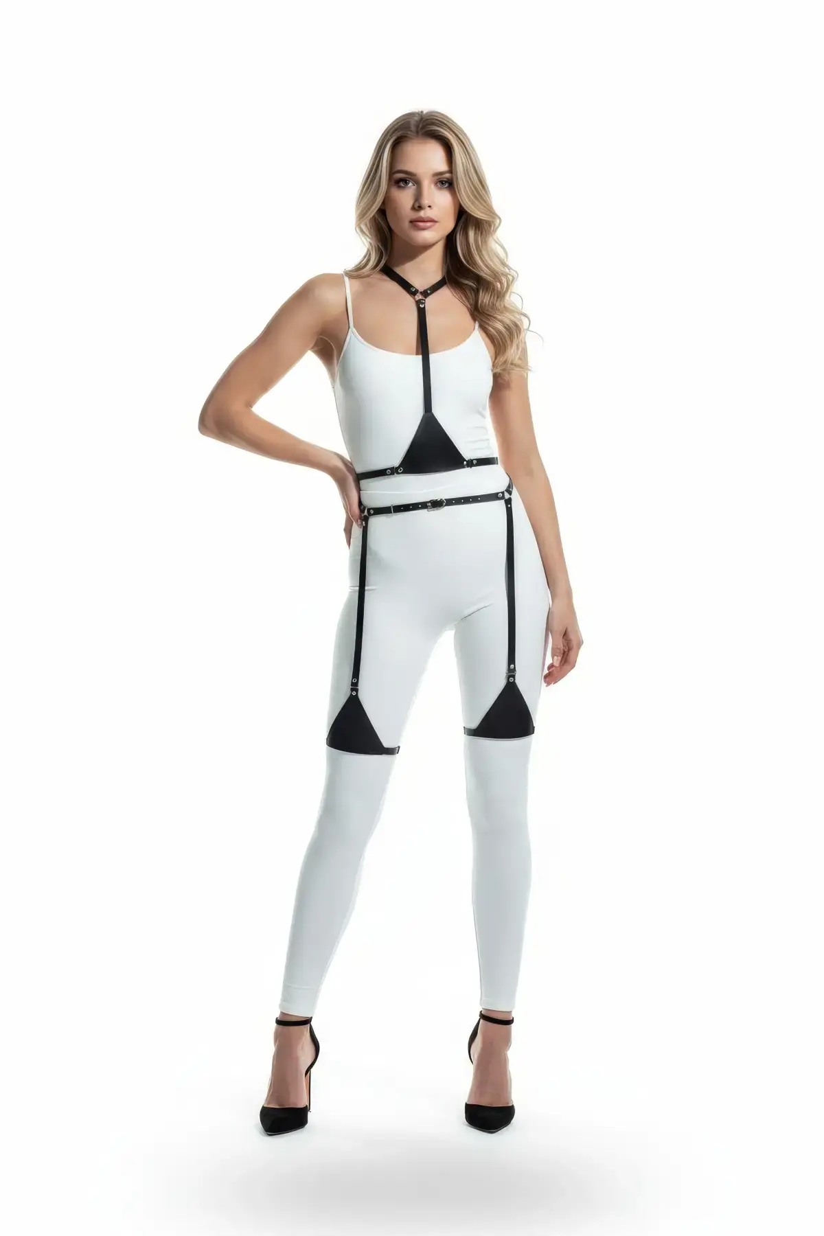 Siyah Harness Takım Ayarlanabilir Suni Deri Vücut Aksesuarı - APFT226