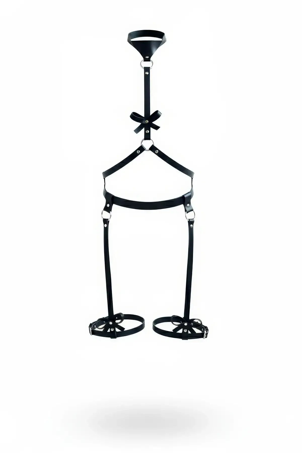 Siyah Harness Takım Boyunluklu Fiyonk Detaylı Deri Vücut Aksesuarı - APFT276
