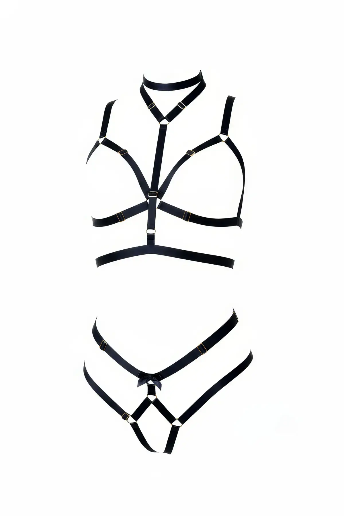 Siyah Harness Takım Choker Detaylı Bralet Külot Seti - APFT362