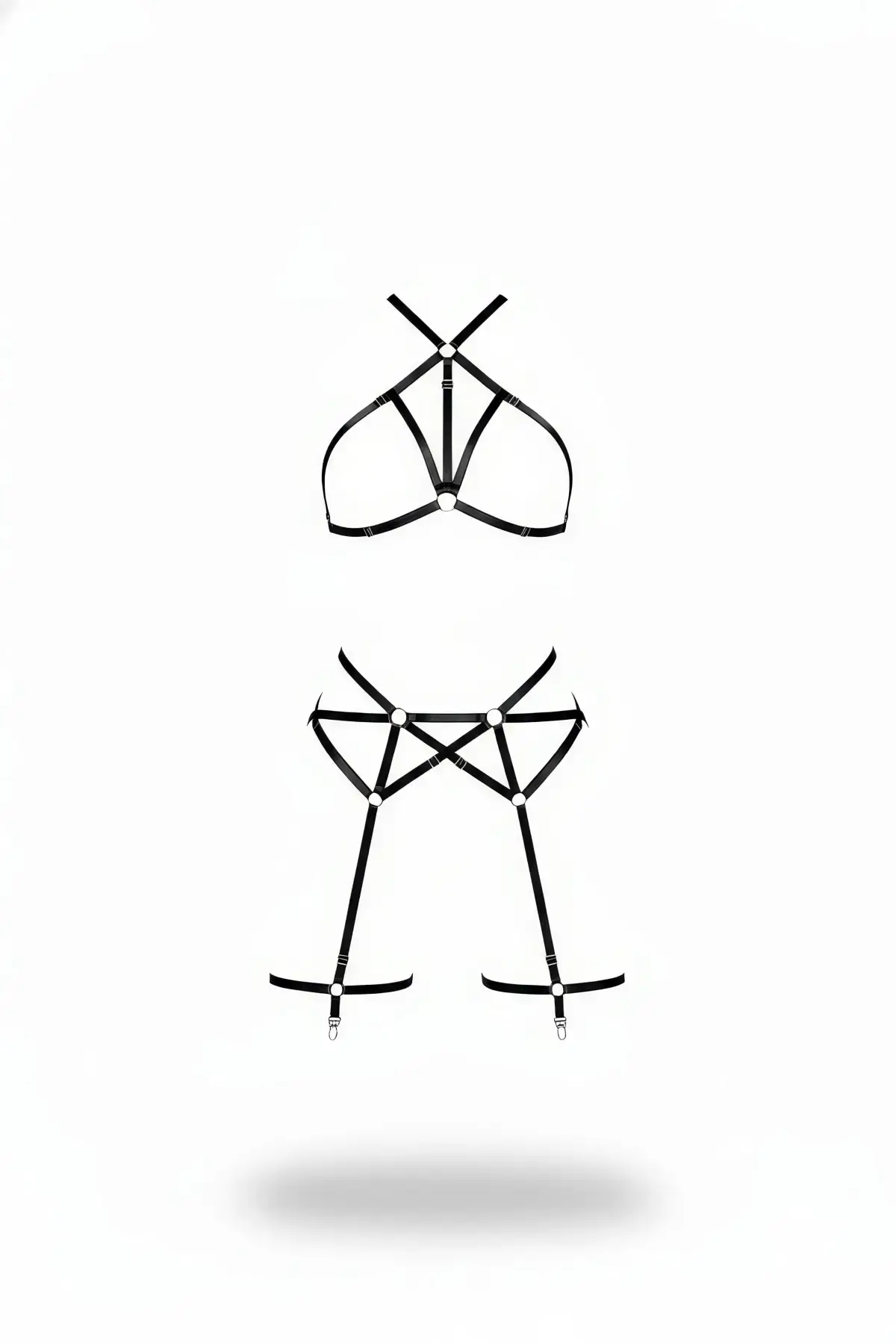 Siyah Göğüs Harness Kafes Detaylı Suni Deri Vücut Aksesuarı - APFT349