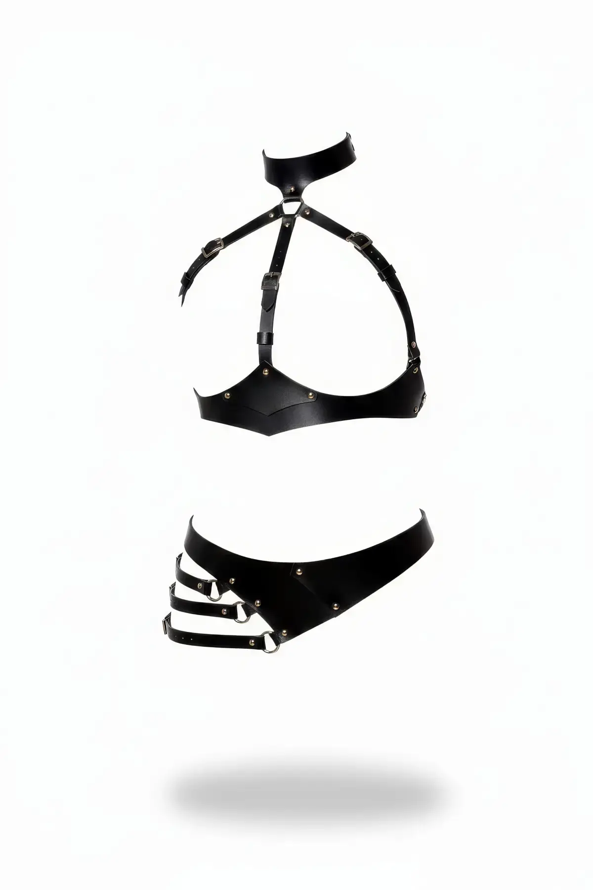 Siyah Harness Takım Suni Deri Ayarlanabilir Vücut Detaylı - APFT718