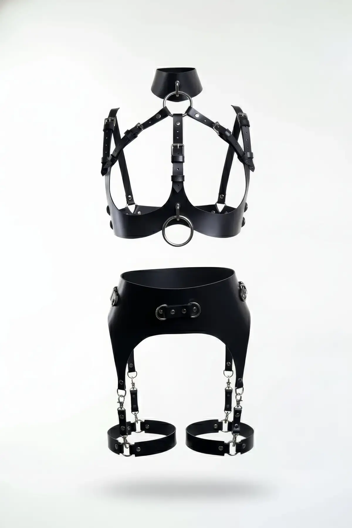 Siyah Harness Takım Deri Vücut Jartiyer Seti - APFT1229