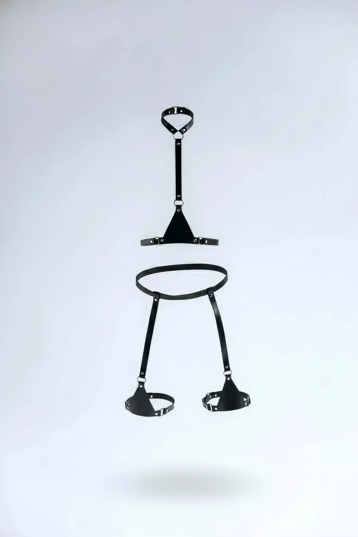 Siyah Harness Takım Deri Vücut Jartiyer Seti - APFT1229