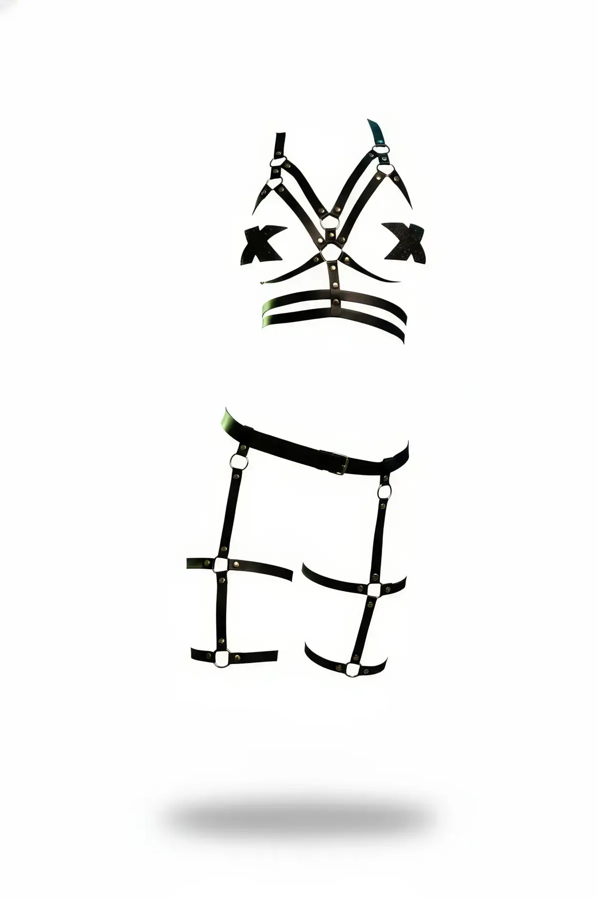 Siyah Harness Takım Deri Vücut Jartiyerli Metal Detaylı - APFT303