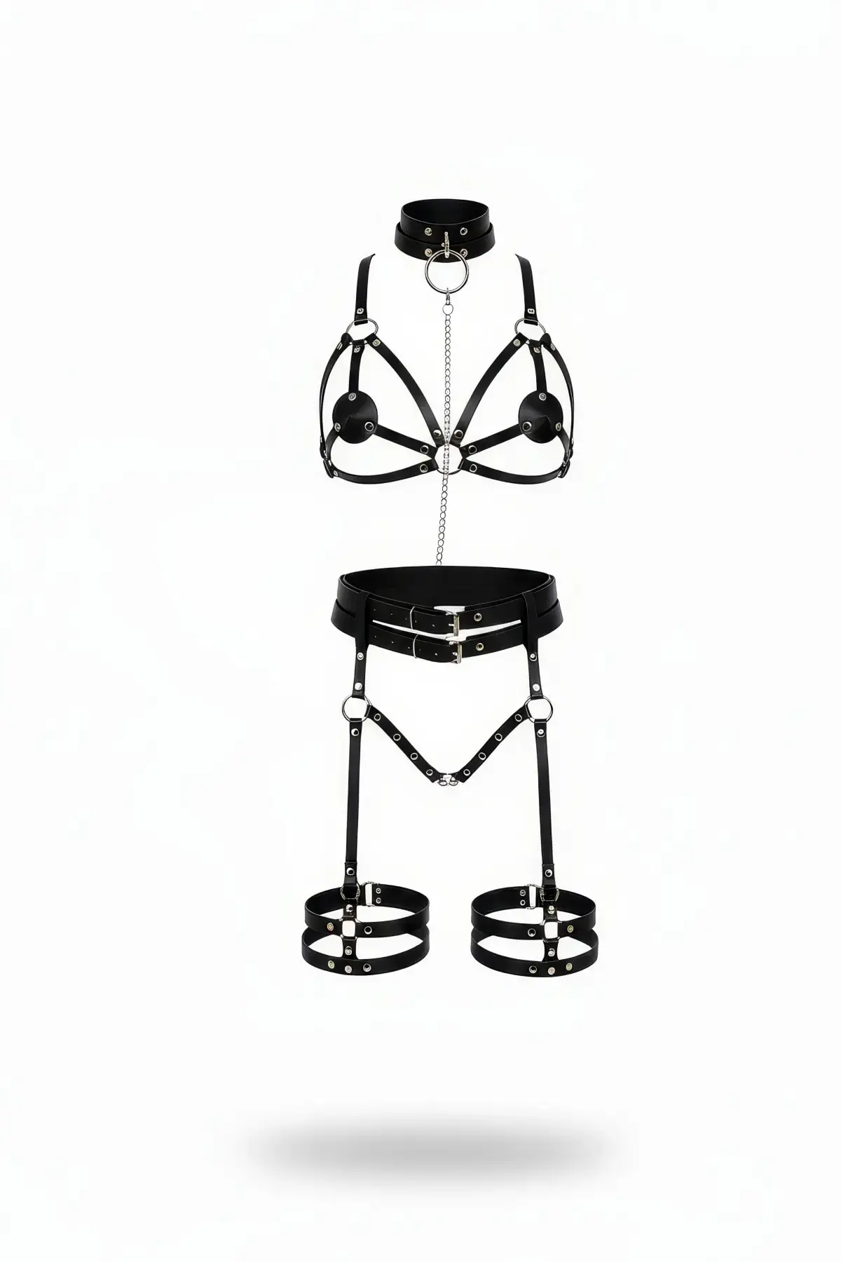 Siyah Harness Takım Deri Zincir Detaylı Vücut Aksesuarı - APFT456