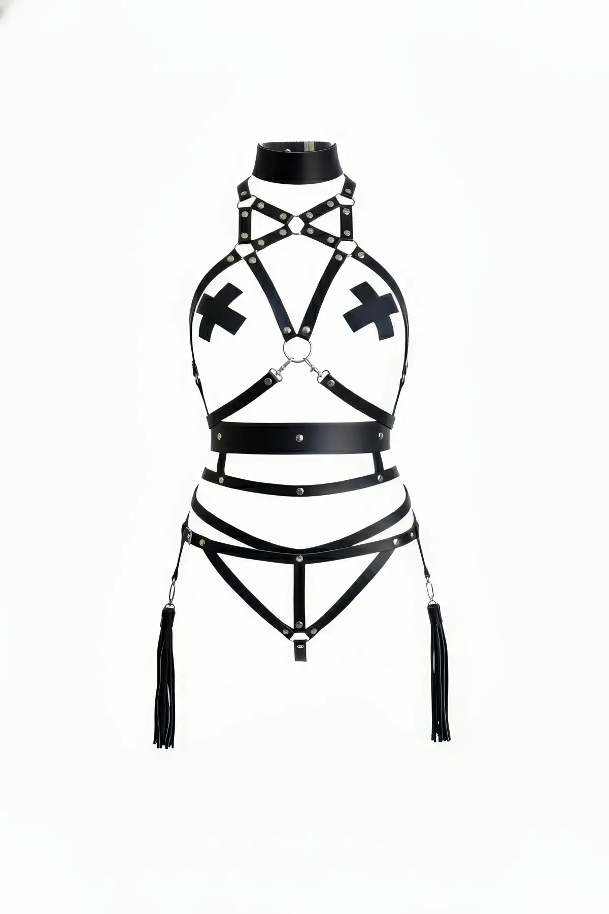 Siyah Harness Takım Suni Deri Zımbalı Yüksek Yaka Detaylı - APFT402