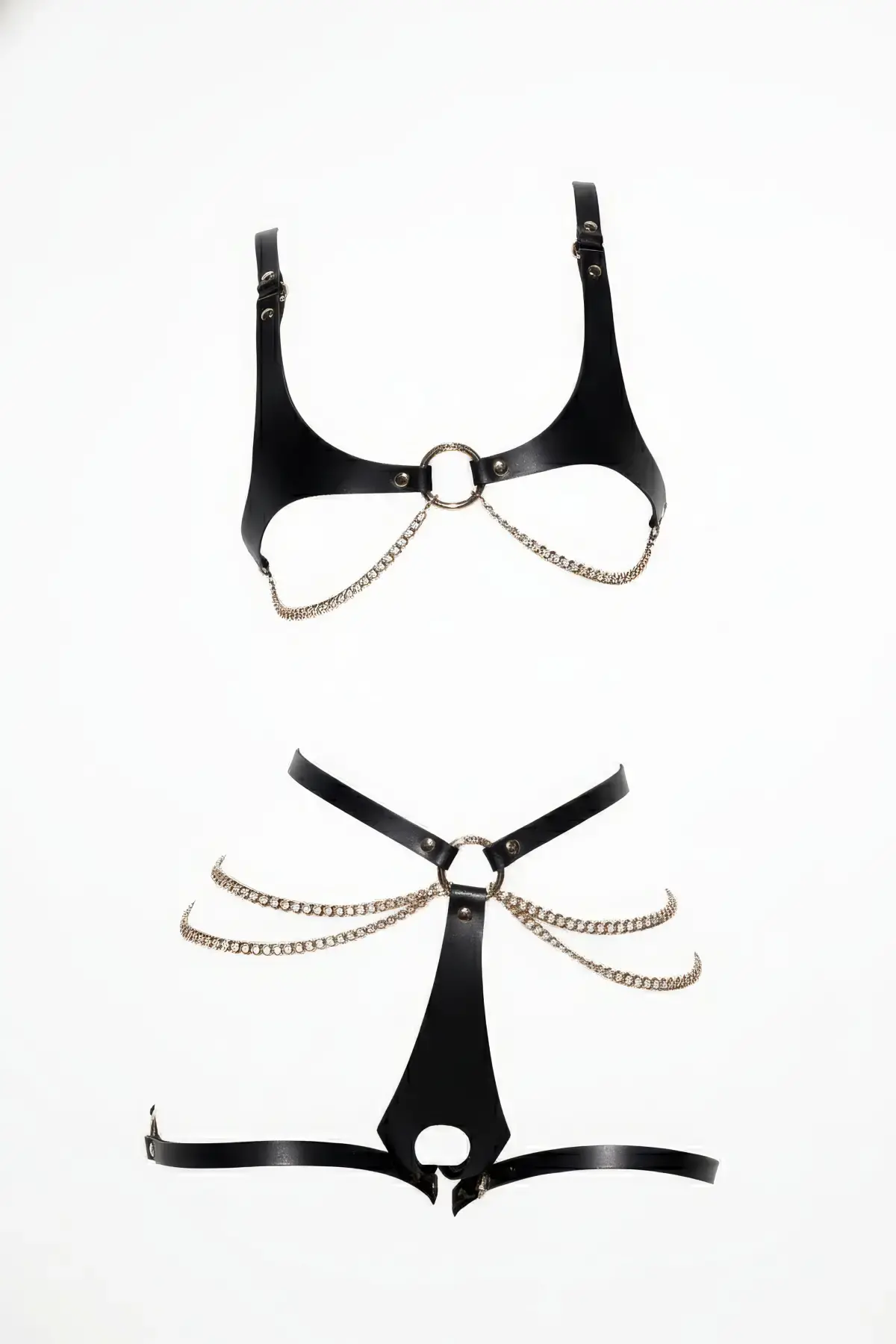 Siyah Harness Takım Zincir Detaylı Deri Vücut Aksesuarı - APFT1384