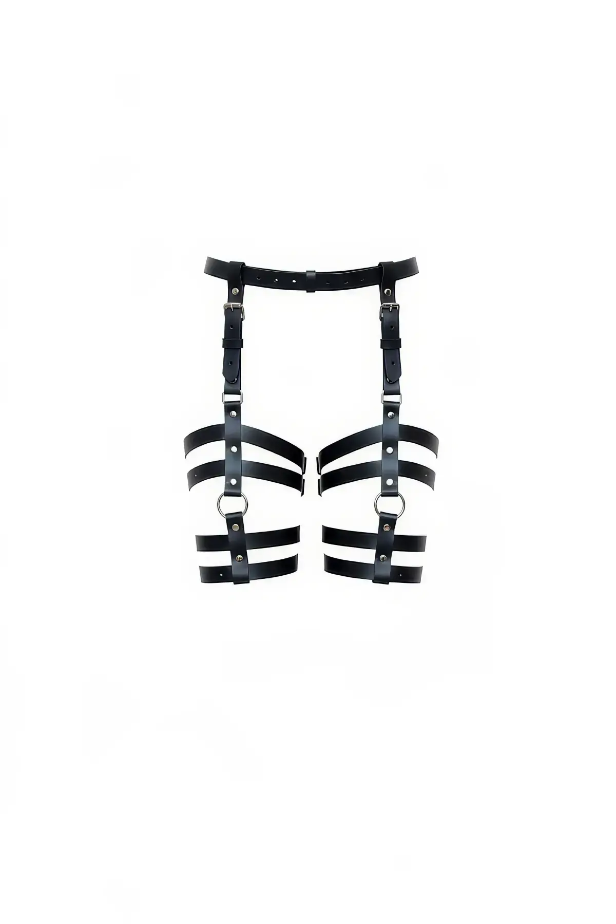 Siyah Jartiyer Harness Deri Çok Bantlı Bel Ve Bacak Aksesuarı - APFT762