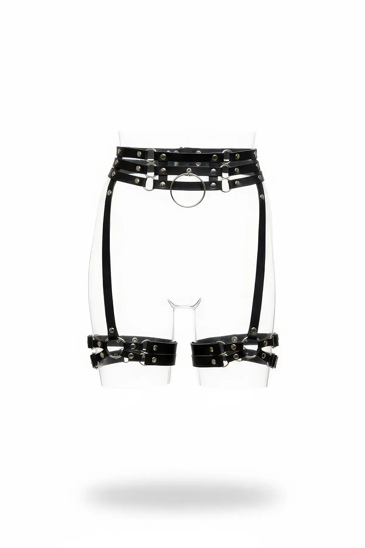Siyah Jartiyer Harness Deri Görünümlü Zımbalı Halka Detaylı - APFT746