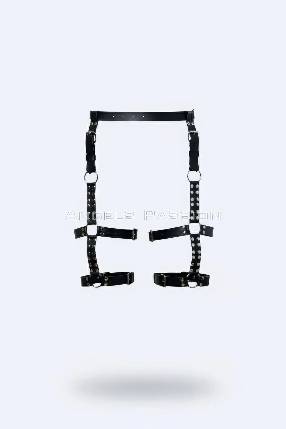 Siyah Jartiyer Harness Deri Zımbalı Halka Detaylı - APFT862
