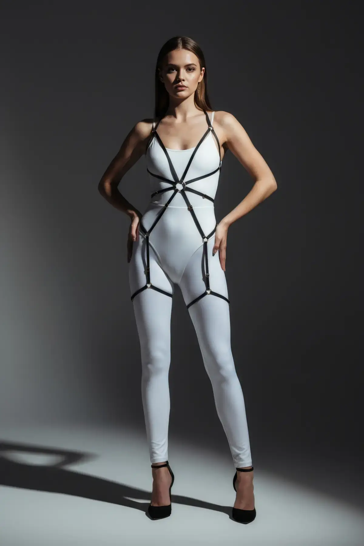 Siyah Kadın Body Harness Kafes Detaylı Tam Vücut Aksesuarı - APFT360