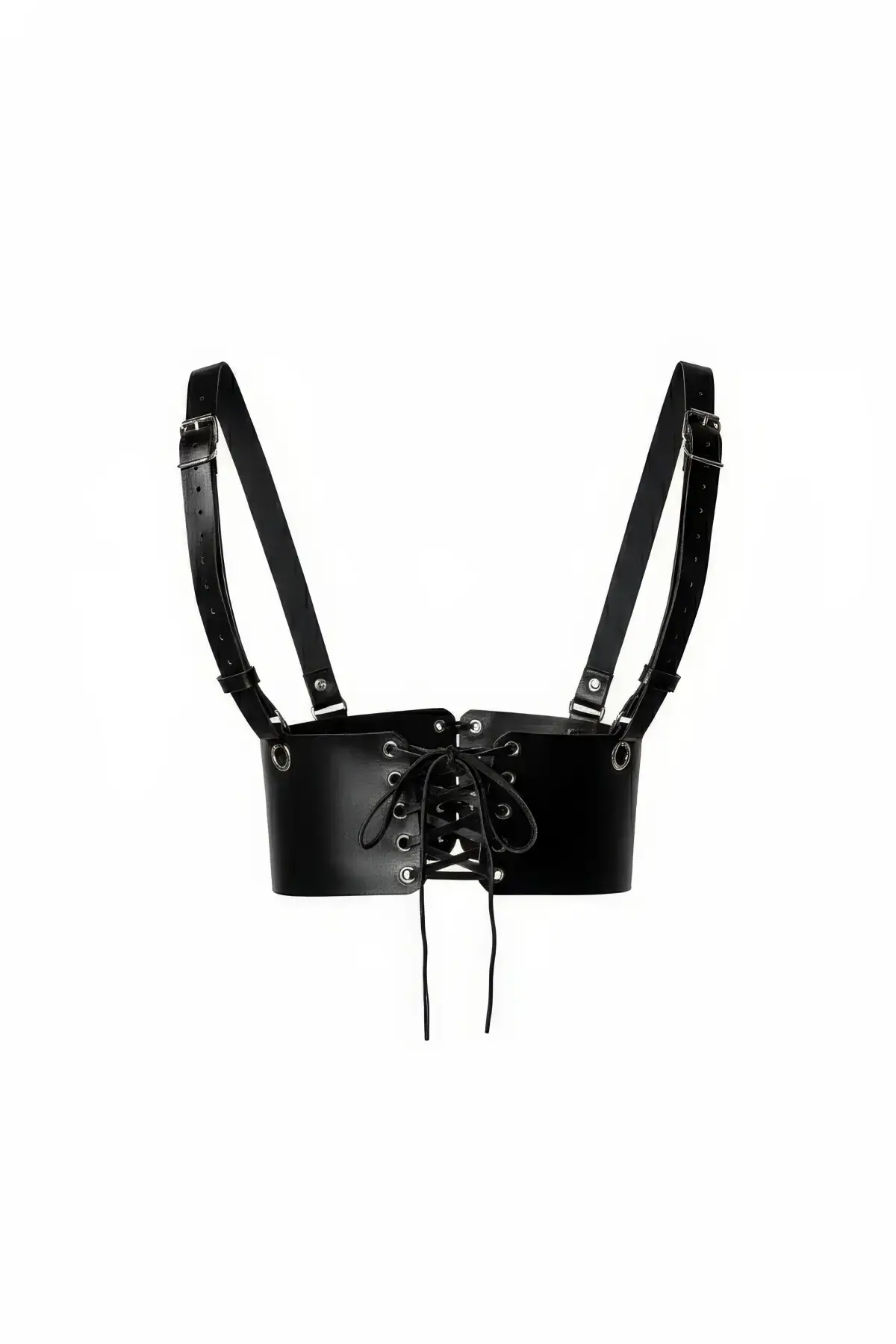Siyah Kadın Kemer Suni Deri Halka Detaylı Göğüs Aksesuarı - APFT545