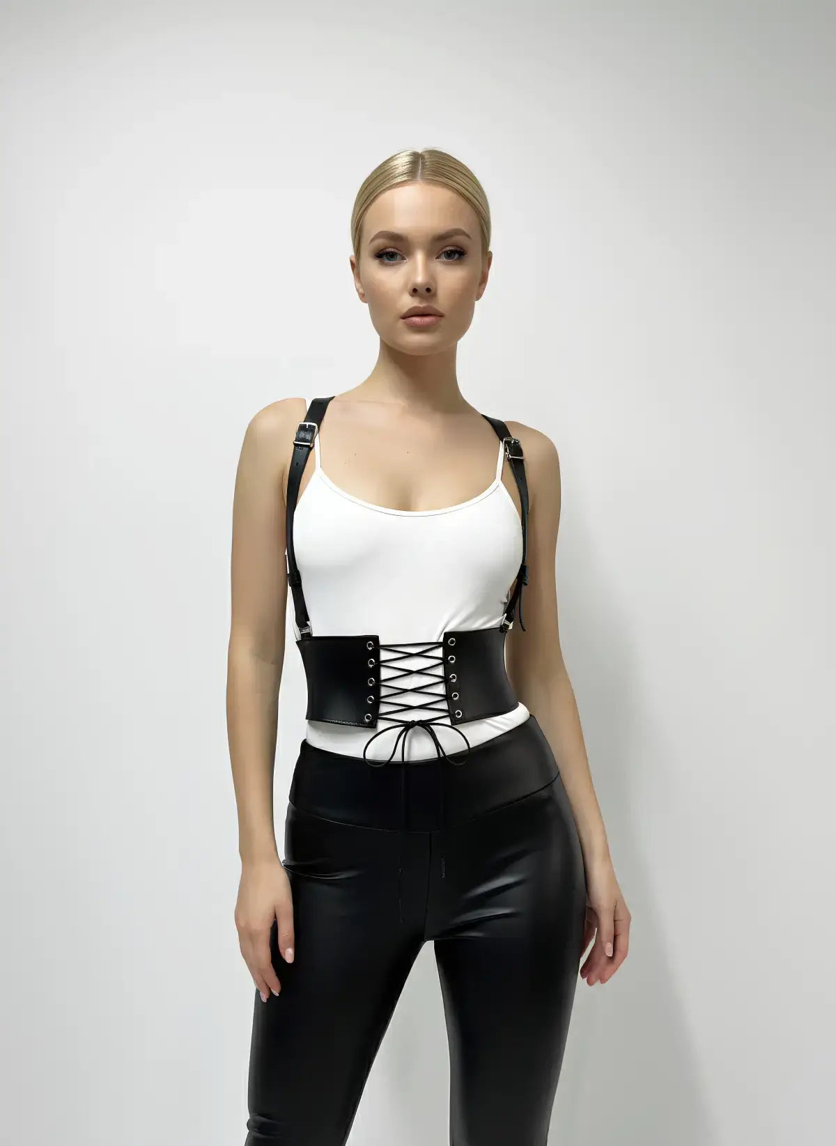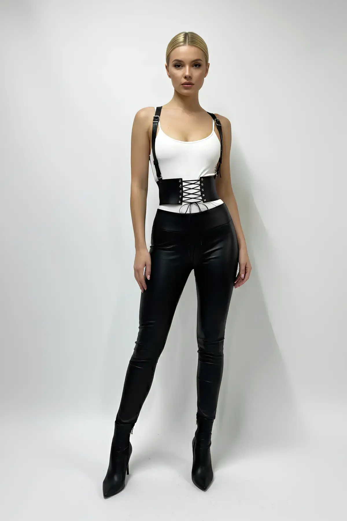 Siyah Kadın Kemer Zımba Detaylı Deri Vücut Kemeri - APFT199