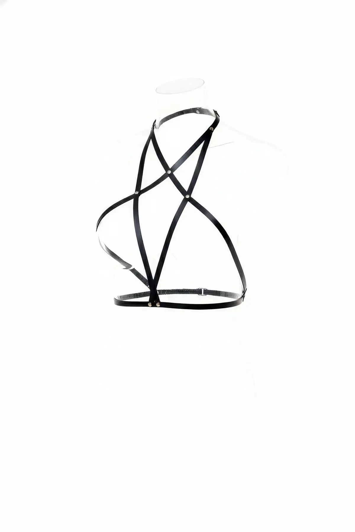 Siyah Göğüs Harness Deri Tokalı Vücut Korse - APFT1402