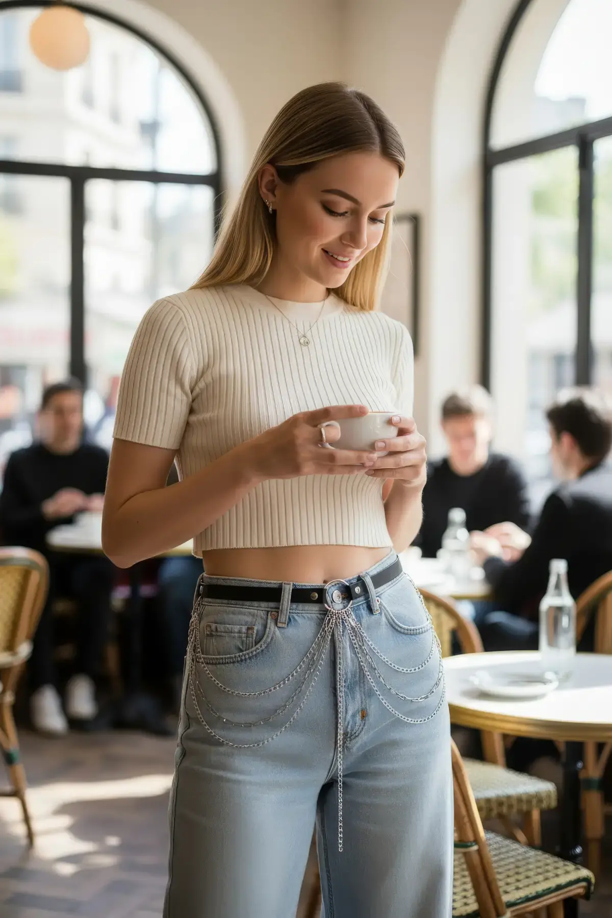 Siyah Kadın Kemer Çok Katmanlı Zincir Detaylı - APFT922