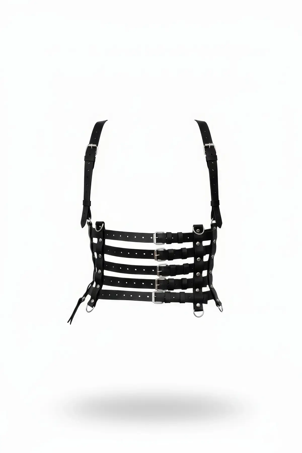 Siyah Kadın Kemer Deri Çok Bantlı Omuz Detaylı Korse - APFT630