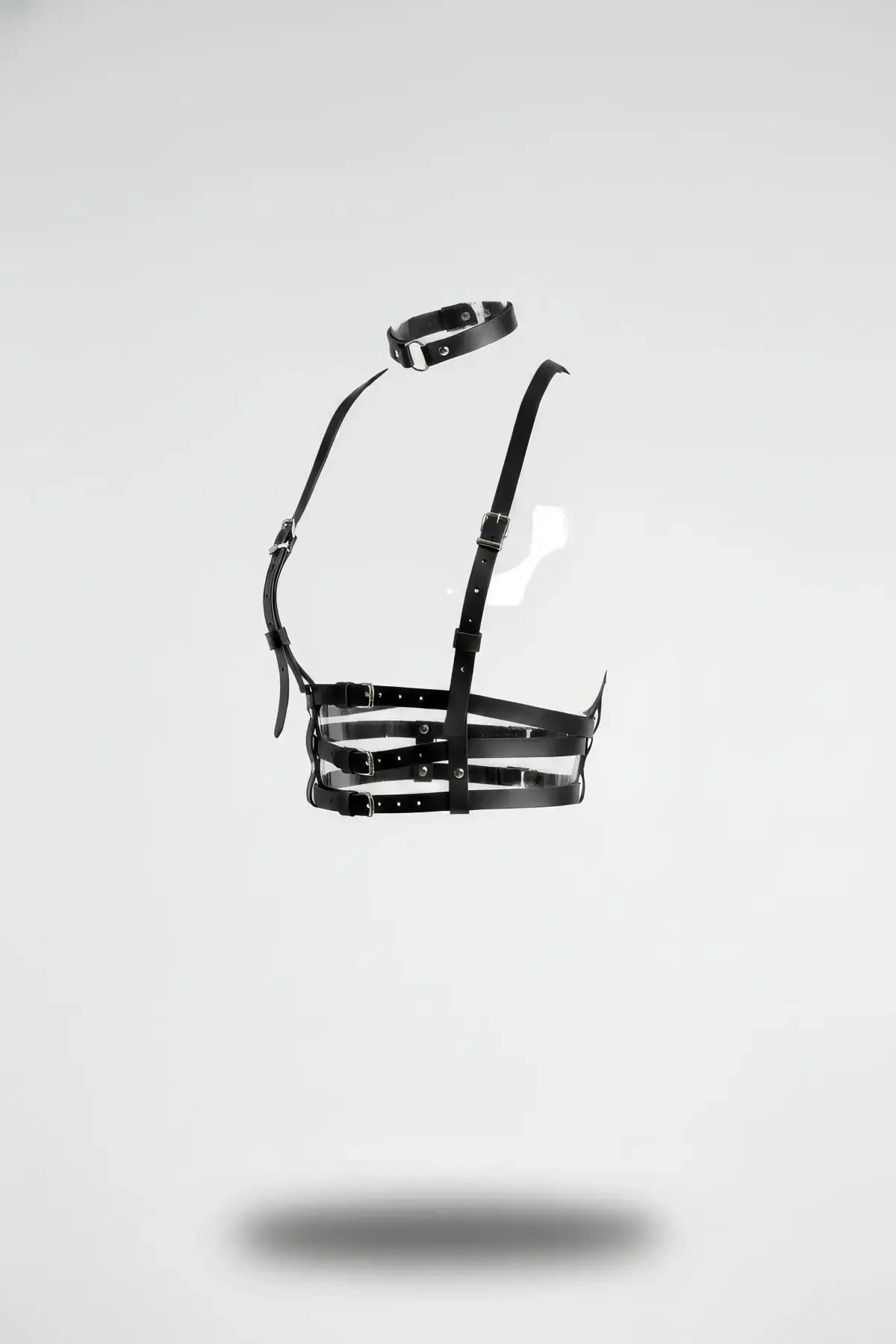 Siyah Göğüs Harness Boyunluklu Halkalı Çapraz Bant Detayı - APFT103