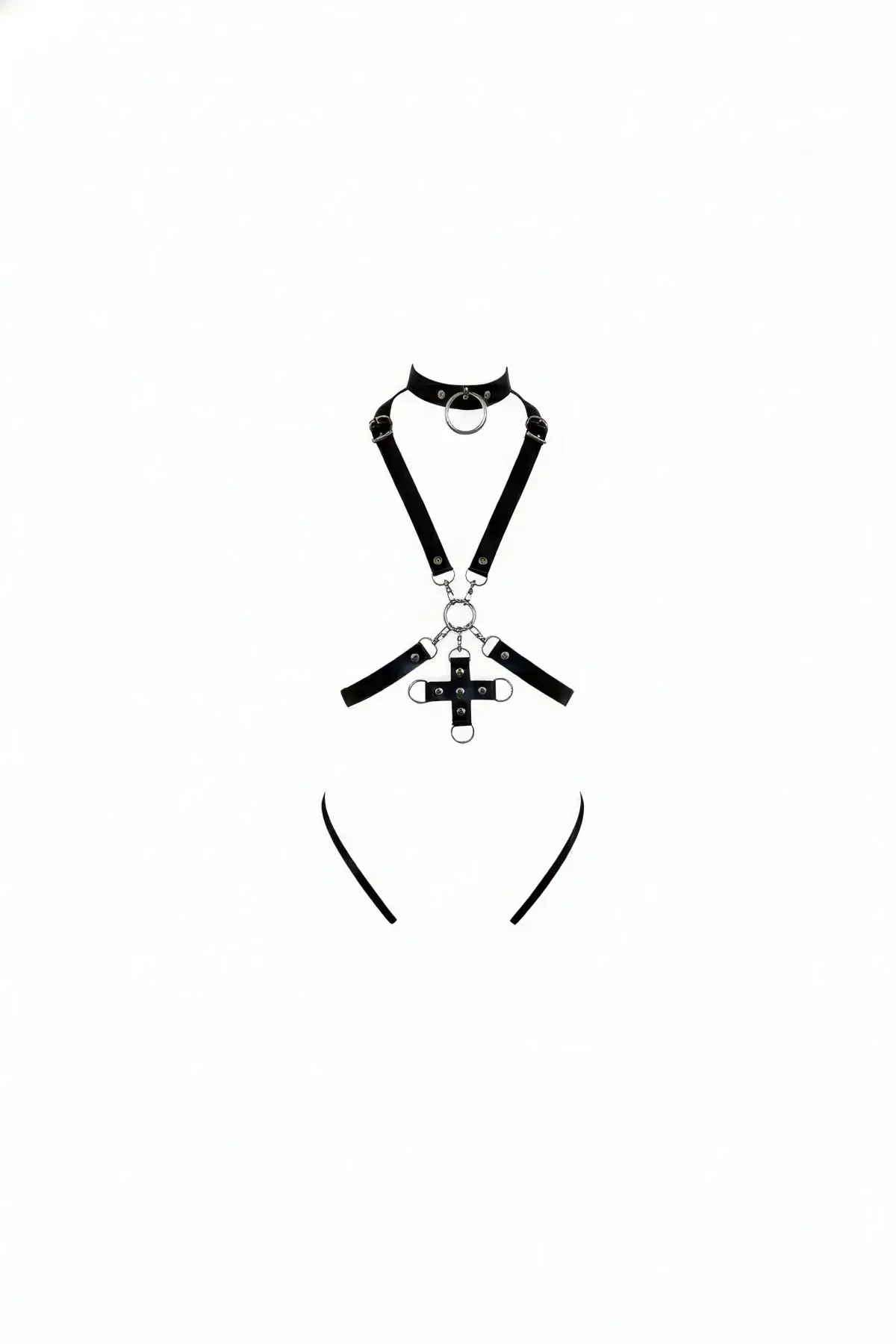 Siyah Kadın Kemer Deri Haç Detaylı Vücut Aksesuarı - APFT404