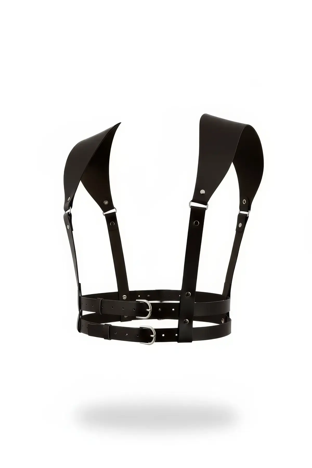 Siyah Kadın Kemer Deri Omuz Detaylı Çift Tokalı Vücut Aksesuarı - APFT966