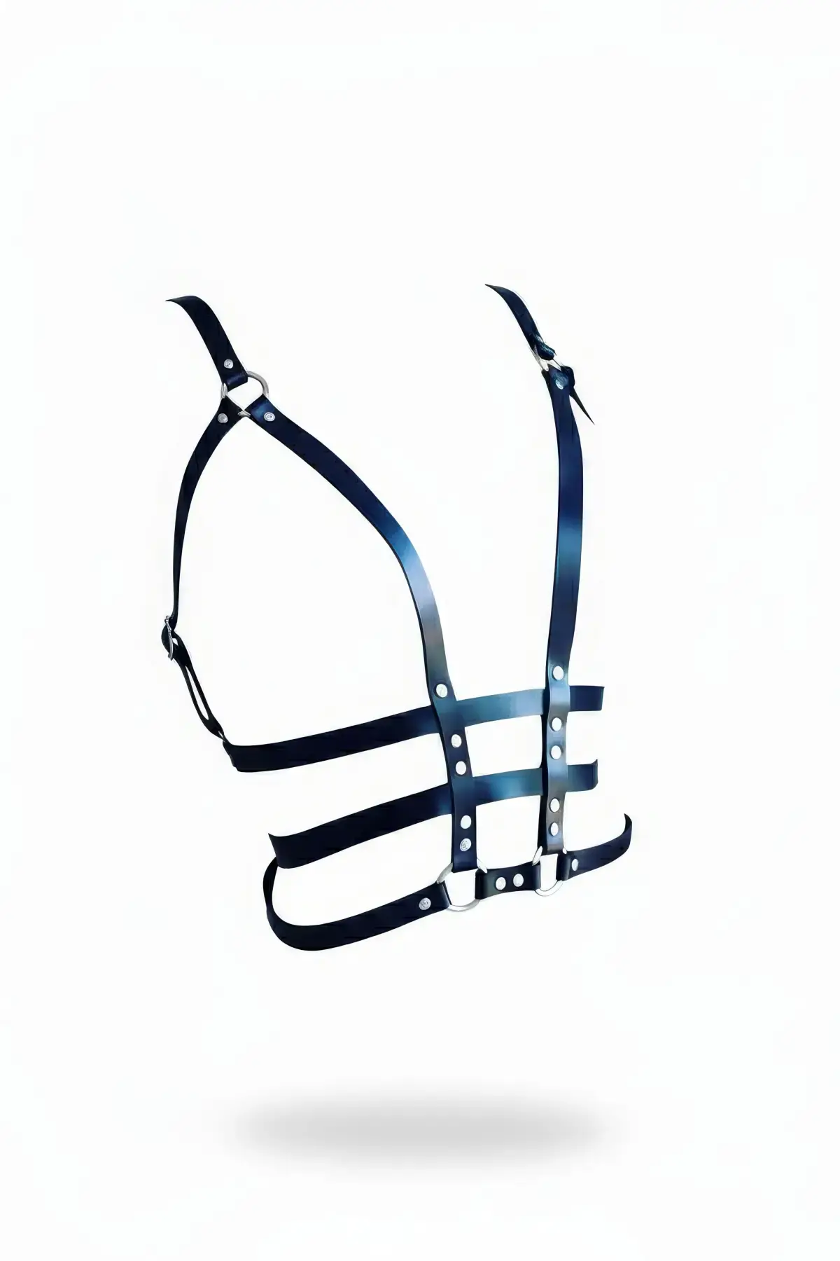 Siyah Göğüs Harness Deri Detaylı Kafes Bralet - APFT1155