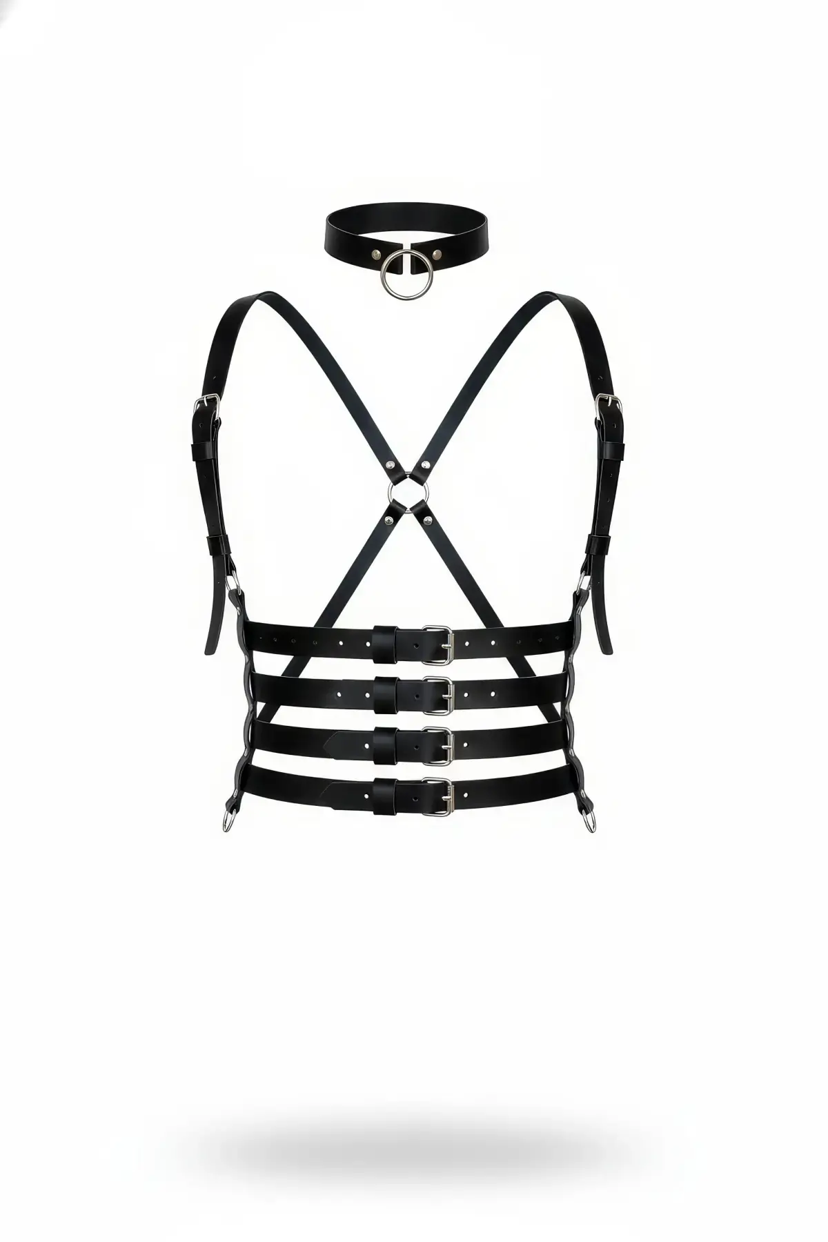 Siyah Harness Takım Kalın Deri Boyunluklu Jartiyerli - APFT842