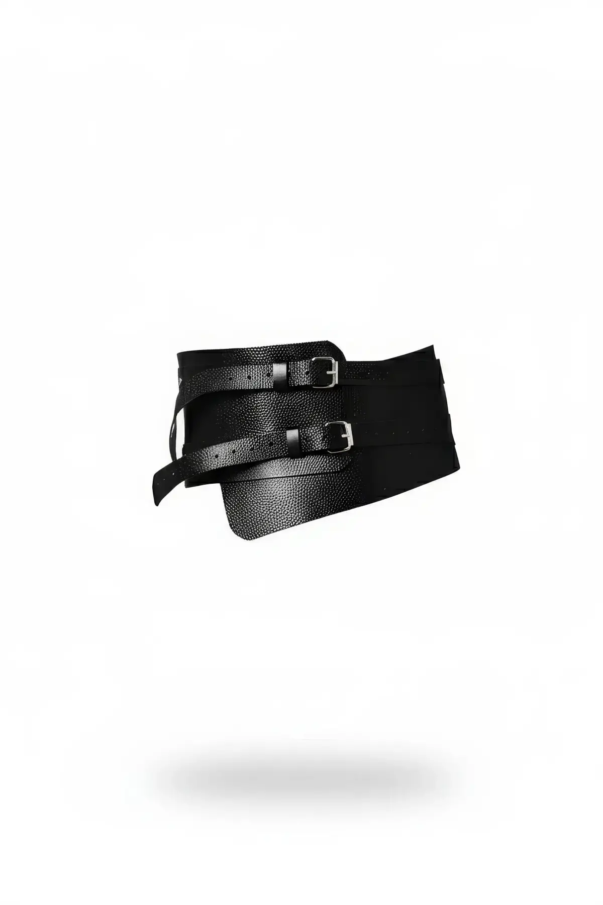 Siyah Kadın Kemer Omuz Detaylı Deri Korse - APFT622